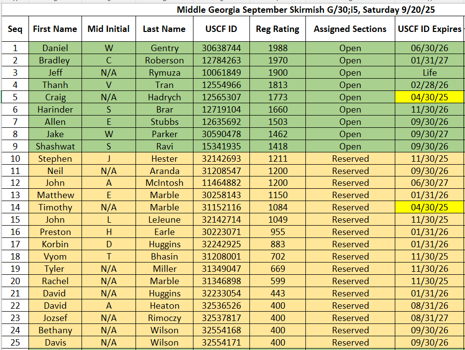 Middle Georgia September Skirmish Chess Tournament, G/30;+5