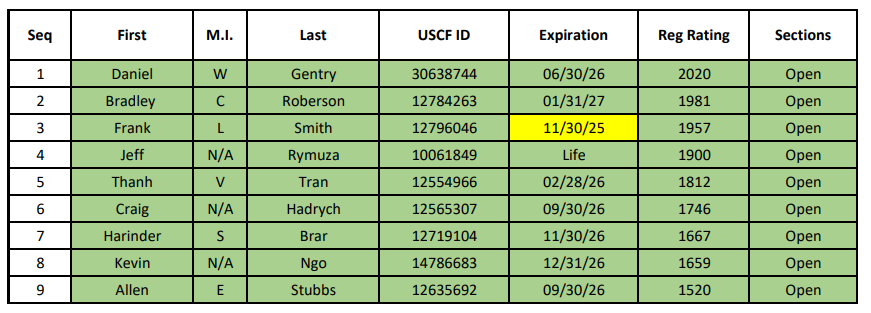 Registration list (note some players prefer to register on site):